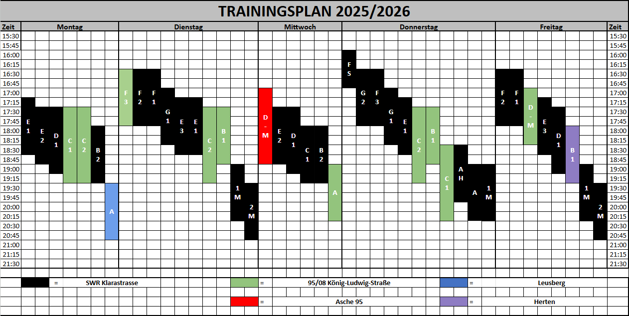 15. September 2022 Robin Zühlke Trainingsplan Hinweis: In den Sommerferien kann es zu Abweichungen bei den Trainingszeiten kommen! Bitte vorher Kontakt zu dem jeweiligen Trainer aufnehmen!Hier geht es zu den Kontakten Teilen mit: Klick, um auf Facebook zu teilen (Wird in neuem Fenster geöffnet) Facebook Klicken, um auf WhatsApp zu teilen (Wird in neuem Fenster geöffnet) WhatsApp Klicke, um auf X zu teilen (Wird in neuem Fenster geöffnet) X Klicken, um einem Freund einen Link per E-Mail zu senden (Wird in neuem Fenster geöffnet) E-Mail Klicken zum Ausdrucken (Wird in neuem Fenster geöffnet) Drucken Klick, um auf LinkedIn zu teilen (Wird in neuem Fenster geöffnet) LinkedIn